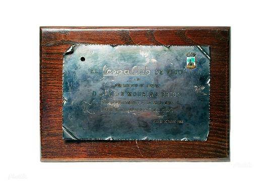 Placa entregada a Julián Mouriño como Presidente de Honor del Vespa Club Vigo en la que se puede leer: "EL VESPA CLUB DE VIGO, A SU PRESIDENTE DE HONOR D. JULIÁN MOURIÑO TRIGO, EN AGRADECIMIENTO A LA MERITORIA LABOR REALIZADA EN PRO DEL MISMO. VIGO 12 OCTUBRE 1966".