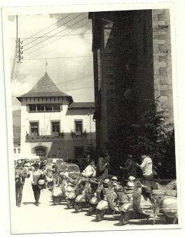 Imagen de Julián Mouriño y María Estrella caminando por la Seu d´Urgell con motivo del Rally de Cataluña celebrado a mediados de mayo de 1966. Este matrimonio fue el único que se animó en el Vespa Club Vigo para viajar hasta tierras catalanas. Según se puede leer en el reverso, se dirigían hacia la catedral a oir una misa.
