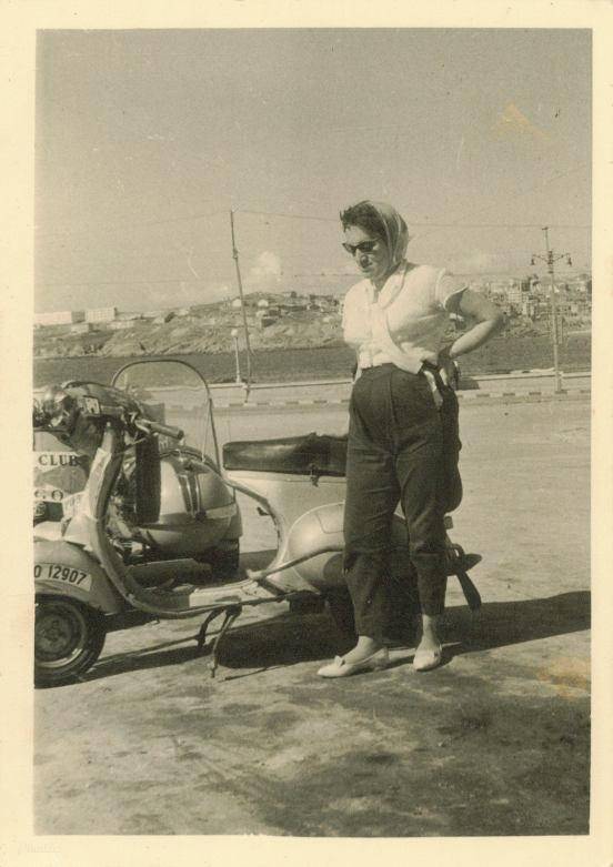 La esposa del Sr. Trigo en una excursión en Vespa a Ferrol