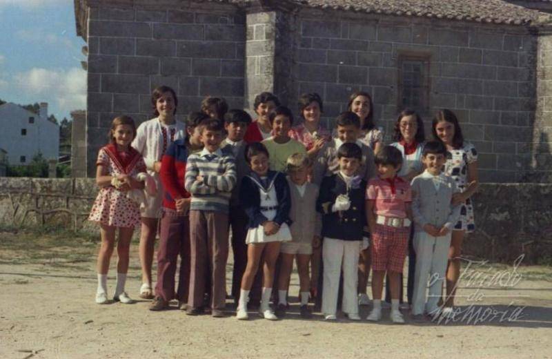 Si nos poñemos a pensar que algún dos rapaces que figuran na foto xa se foron para un mundo mellor... Si pensamos que os chavales ésos xa estarán xubilados, con fillos, netos... é ás veces algo máis que éso, nos damos conta que o mundo non para con naide... É si nos poñemos a mirar todos cántos nenos hai no retrato, todos coñecidos de aquéla época é unha ledicia cando vemos que están "ahí", na súa casa rodeado de fillos e netos... Este é o tesouro que temos os probes, que temos o cariño de una chea de xente que che ama. ¡Non hai cousa mellor! E compadezco a esas persoas que non teñen quén as queira. Porque saben que o futuro seu corre certo peligro. Si non te acercas a os teus, o que che espera é un mundo cheo de nubarróns. Ás veces se teñen dado casos de non acordarse toda unha vida de alguén que está moi próximo na familia, cando o parentesco se foi polo río abaixo... Ás veces, faise tarde o arrepentirse pensando nas putadas que se levan feito... EGG.Santiago ::::::::::: 13Agosto2015