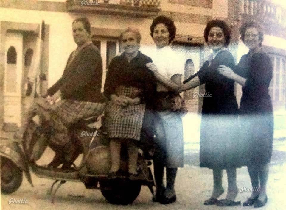 En Santa Liberata, Baiona, año 1958. Herminia Perez "Tia Herminia" abuela de Jaime Santos Leyenda, Lola " A Paloma ", las tías Carmen y Tonia " As Caneras " y Olga Leyenda, hija de Herminia Pérez. Al fondo la casa familiar de los Caneros.