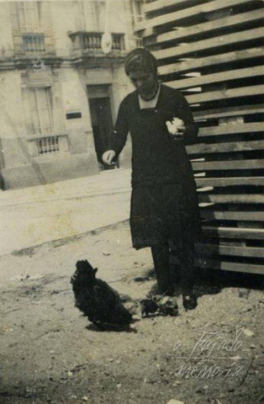 Unha das irmans Sosin no Ramal onde tiñan un kiosco, era de madeira se desarmaba todas as noites Na imaxen botandolle de comer a unha gallina.