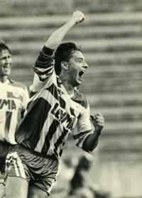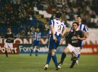 Tristán besa el trofeo de campeones junto a Romero y Scaloni tras ganar la final de la Copa del Rey de 2002, disputada entre el Real Madrid y el Deportivo en el estadio Santiago Bernabéu el 6 de marzo de 2002. El Dépor se impuso por 1-2 al equipo blanco, que celebraba ese día los cien años de su fundación.