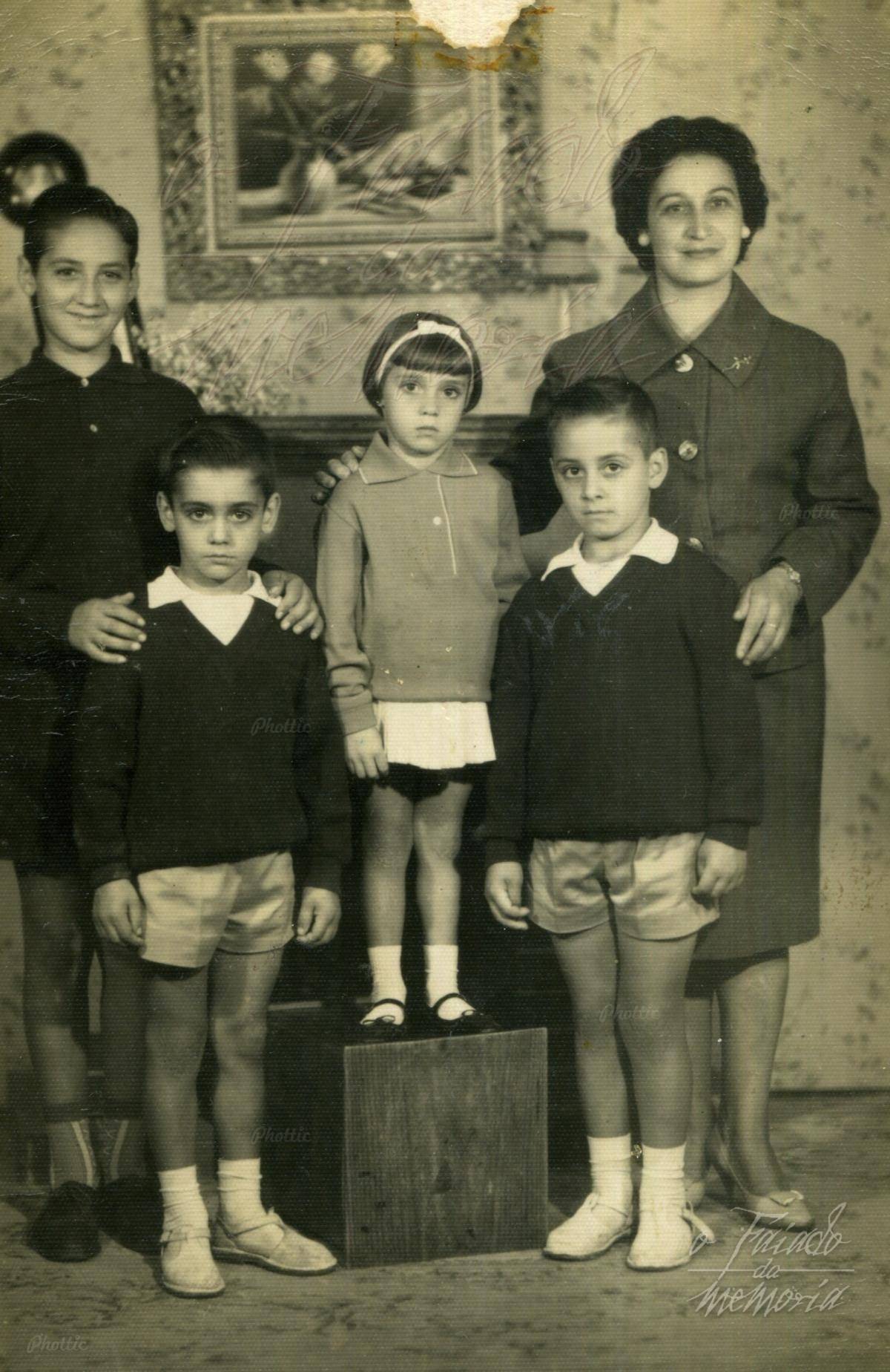 Preciosa foto, que guapos todos y en especial la madre Juana que está guapísima como era ella, están situados el primero por la izquierda Juan Manuel, después Kiko, en el medio Maruchi (siempre le llamamos así, no sabía que su nombre era Carmen), después Javier y Juana. Un saludo para todos, Beatriz.