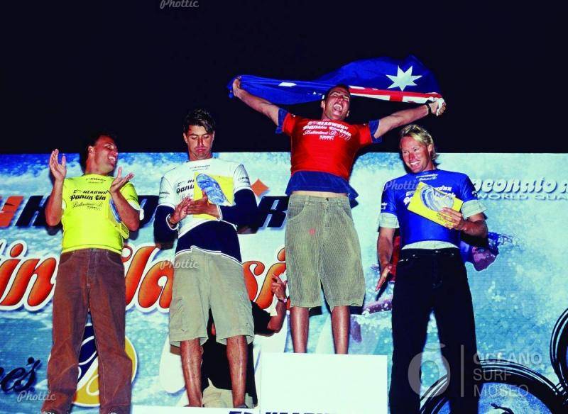 De izquierda a derecha: Shane Powell (Australia), Yuri Sodre (Brasil), Joel Parkinson (Australia) y Paul Canning (Sudáfrica) protagonizaron la final de 1999. Un Joel Parkinson exultante alza la bandera de su país. Joel combinó maravillosamente durante el campeonato, y tanto en surf libre como en competición, un estilo innovador con las maniobras clásicas. No fue extraño verle en la misma ola un bottom de fábula y un aéreo increíble. Pero además "Parko" mostró poseer ese don especial que sólo tienen contados surfistas: la capacidad de entrar en sintonía con el océano, un feeling que le hace conocedor del ritmo, tamaño y posición por dónde entrarán las mejores olas. Leyó el mar como pocos. Se vio en su primera manga, y lo vimos en otras siete, además de en la final. Tal y como afirmó Sarge, desde la aparición de Occy, Parko ha sido en Australia el surfista más impactante que ha surgido de esa inagotable y fantástica cantera.