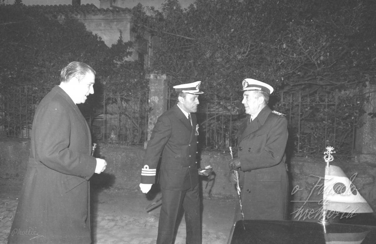 A fotografia recolle a visita do Capitan General Juan Romero Manso, responsable da Zona Maritima do Cantabrico, o recibe o Comandante de Vilagarcia é o Alcalde.