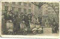 Manuel Portela y Alberto Alonso vencedores de la prueba posanen la isla de La Toja delante de sus vespas y el Seat Panda que les sirvió como vehículo de asistencia.