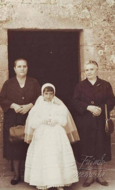 Señora Carmen veu de Vilaxoan a vivir a o Ramal, o seu home Francisco empleouse nas Obras de Puerto, os fillos casaron e Carmen e Francisco estiveron no mismo sitio hasta o final das suas vidas. A foto corresponde a comunion de Esperanza polo ano 62, na foto cas suas aboas, a da dereita aboa paterna, Esperanza da Pobra do Caramiñal,