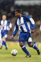 Romero conduce la pelota en un lance de la final de la Copa del Rey de 2002, disputada entre el Real Madrid y el Deportivo en el estadio Santiago Bernabéu el 6 de marzo de 2002. El Dépor se impuso por 1-2 al equipo blanco, que celebraba ese día los cien años de su fundación.