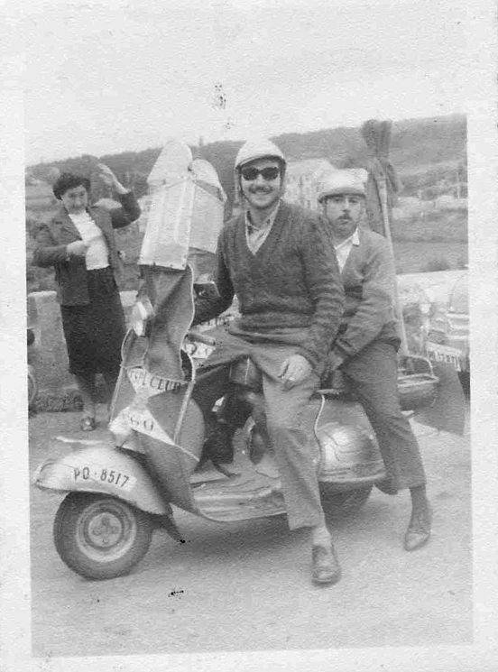 Año 1960. Fotografía aportada por Alberto Alonso, según comenta... "Son mi padre (delante) y su amigo Manolo en una prueba en A Coruña, en una salida organizada por el Vespa Club de Vigo".