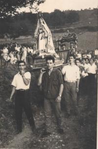 Paqui Berride donante e colaboradora do Faiado tomando o sol nas portas no seu Carril como antes se facia, segunda pola esquerda Carmiña Iglesias a sua cuñada