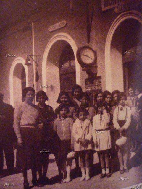 Salvador Carbó publica en el Facebook de Phottic esta preciosa foto en la estación del tren de Montaverner, donde una maestra y sus alumnas se van de excursión a Xátiva (Valencia, España) principios de los años 30.