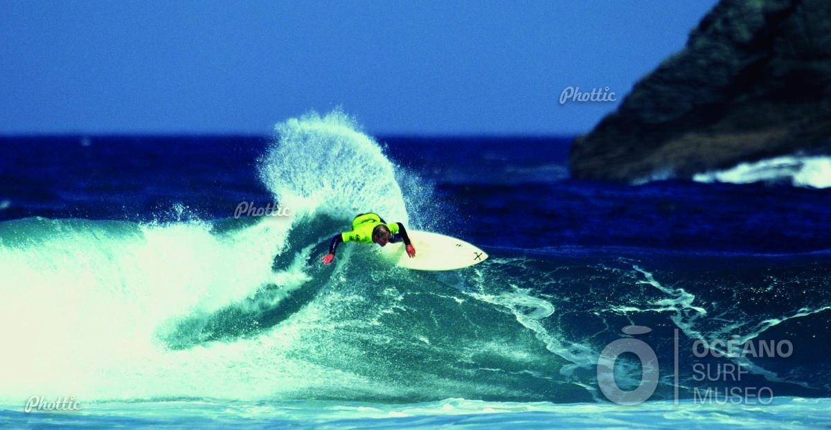 Ryan Simmons surfea una ola en el Pantín Classic de 1995. El estaounidense, que se acercaría también a Valdoviño cuatro años más tarde, protagonizaría el póster de la edición del año 1997. Esta impresionante imagen se corresponde con una serie de fotografías tomadas por Paul Sarge.