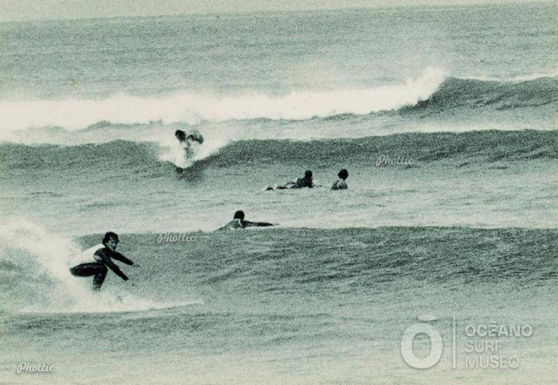 Carlos Bremón surfeando en la playa de Santa Cristina (Oleiros) con otros colegas. Esta imagen forma parte de una serie de nueve fotografías tomadas todas la misma tarde de 1982. Una tarde que tuvo incluso "repercusión cinematográfica" (consultar 'Bremón en Santa Cristina (1)' en esta misma colección).