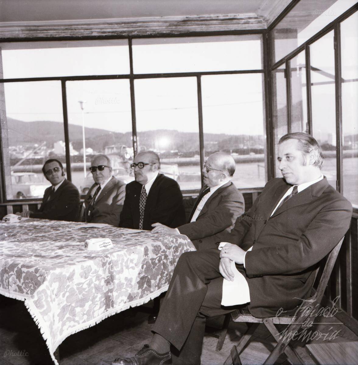 Desde a dereita, Lado Santiago, Gabriel Bravo, Alfonso Saavedra, Jaime Montes e Manolo Touron, o lugar e o Club Nautico, unha charla a os mariñeiros das cofradias do Carril e Vilaxoan