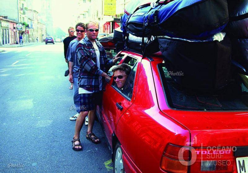 En este foto del periodista Paul Sarge, un grupo de australianos perdidos en las carreteras de Galicia intenta llegar a Pantín para participar en la prueba de 1995. Entre otros, reconocemos a Toby Martin y Shane Bevan.