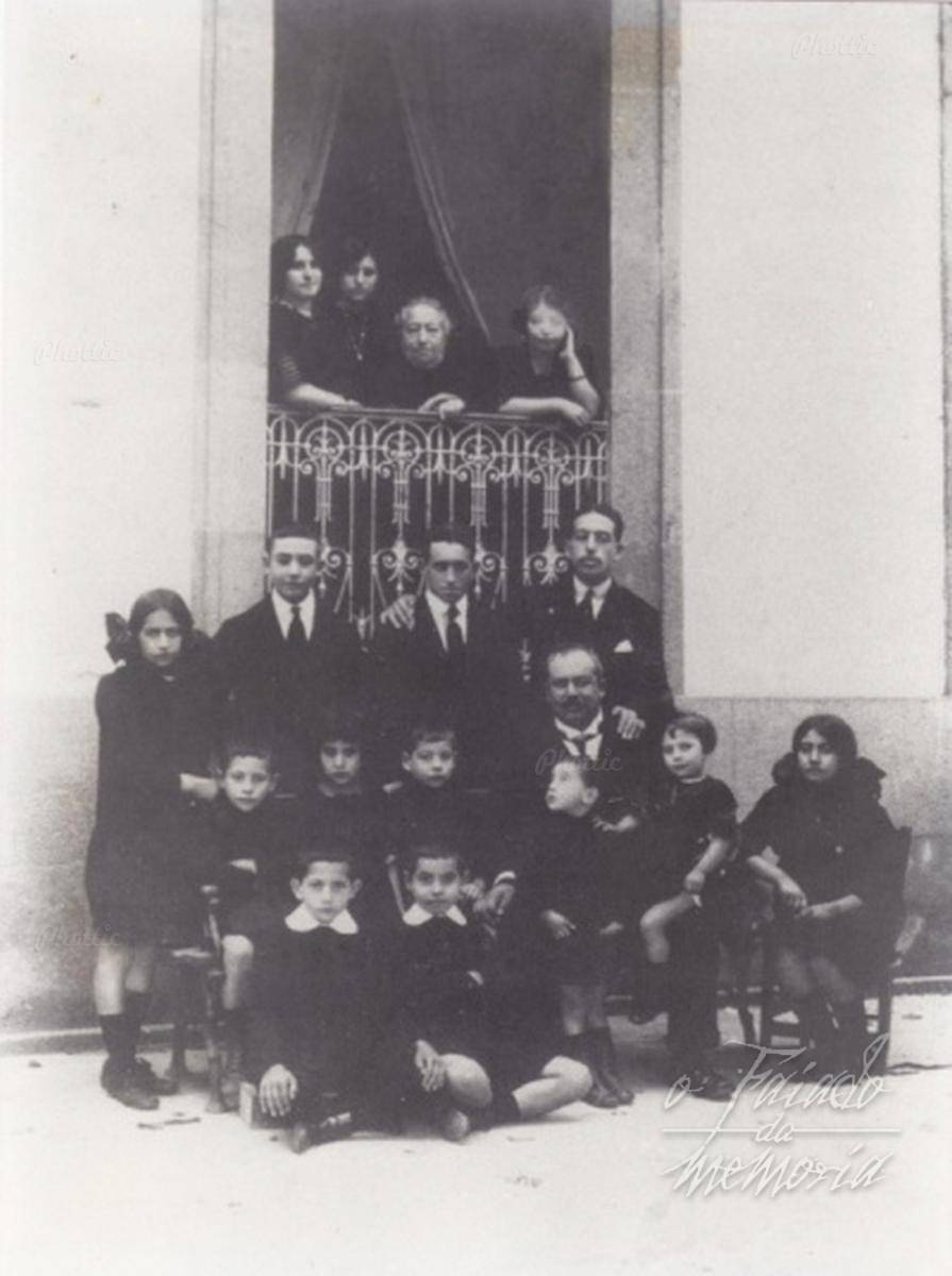 Eduardo Fernandez era exportador de madeiras a Inglaterra, tamen foi concelleiro, un dos artifices da anexion de Vilaxoan e Carril a Vilagarcia. Casou en primeiras nupcias con Josefa Garrido que finou moi nova en Febreiro de 1912. Tiveron dezasete fillos, na imaxen aparecen quince e todos vestidos de luto, como marcaban os tempos. Con eles na foto Dolores Padin, (Mama Lola )sogra de D Eduardo). Os fillos son: Maria, Eduardo, Jose (Co tempo un bo literario satirico)Elena, Manuel, Angeles, Carmen Fernanda, Rafael, Adolfo, Dolores, Francisco, Wenceslao, Alejandro e Pura Fernandez Garrido. Co tempo casou de novo e naceron dous fillos mais, Chicha e Miguelito. Este ultimo finou na guerra en Castellon