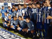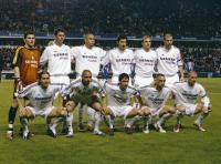 Os equipos forman xunto ao cuarteto arbitral nos prolegómenos da final da Copa do Rei de 2002, disputada entre o Real Madrid e o Deportivo no estadio Santiago Bernabéu o 6 de marzo de 2002. O Dépor impúxose por 1-2 ao equipo branco, que celebraba ese día os cen anos da súa fundación.