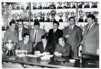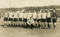 Los equipos forman junto al cuarteto arbitral en los prolegómenos de la final de la Copa del Rey de 2002, disputada entre el Real Madrid y el Deportivo en el estadio Santiago Bernabéu el 6 de marzo de 2002. El Dépor se impuso por 1-2 al equipo blanco, que celebraba ese día los cien años de su fundación.