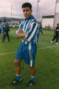 Primer entrenamiento del año 1998. Realizado en el Estadio de Riazor a puerta abierta. Armando posa para la afición.