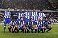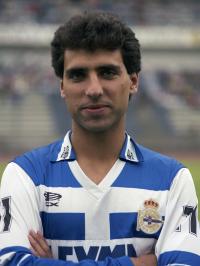 Valerón conduce la pelota ante la presión de Pere Martí, en el partido de la 13ª jornada del Campeonato de Primera División de la Temporada 2003-2004, disputado entre Deportivo y Villarreal, el 30 de noviembre de 2003 en el Estadio de Riazor. El conjunto castellonense se impuso por 0-1.