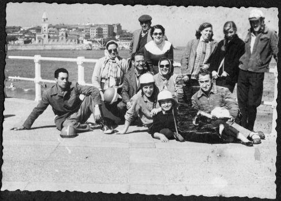 Fotografía de la expedición viguesa asistente al Rally de Oviedo de 1958 posando en una playa Asturiana (Paseo del muro de la playa de San Lorenzo en Gijón). Al segundo día, ya metidos en faena, los participantes rodaron hasta la Playa de Rodiles, visitaron la fábrica de “Sidra El Gaitero”, para seguidamente comer (cada participante recibió una bolsa de comida) en el Lagar de “Sidra el Busto” con exhibición folclórica incluida. Tras la sobremesa visitaron la Universidad Laboral en Gijón. El día remató con una cena en Oviedo y una sesión de baile.