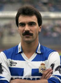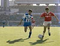 Os xogadores branquiazuis levantan a Copa do Rei de 2002, disputada entre o Real Madrid e o Deportivo no estadio Santiago Bernabéu o 6 de marzo de 2002. O Dépor impúxose por 1-2 ao equipo branco, que celebraba ese día os cen anos da súa fundación.